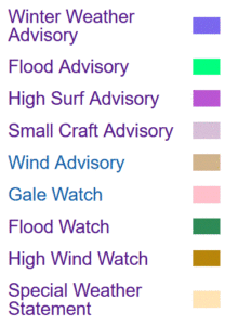 Please open this link to see details on the current Watches, Warnings and Advisories noted above