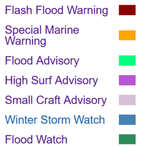 Please open this link to see details on the current Watches, Warnings and Advisories noted above