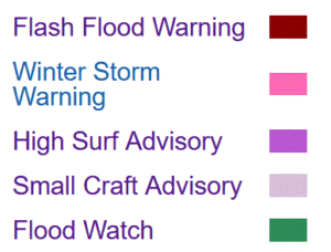 Please open this link to see details on the current Watches, Warnings and Advisories noted above