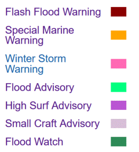 Please open this link to see details on the current Watches, Warnings and Advisories noted above