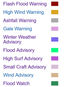 Please open this link to see details on the current Watches, Warnings and Advisories noted above